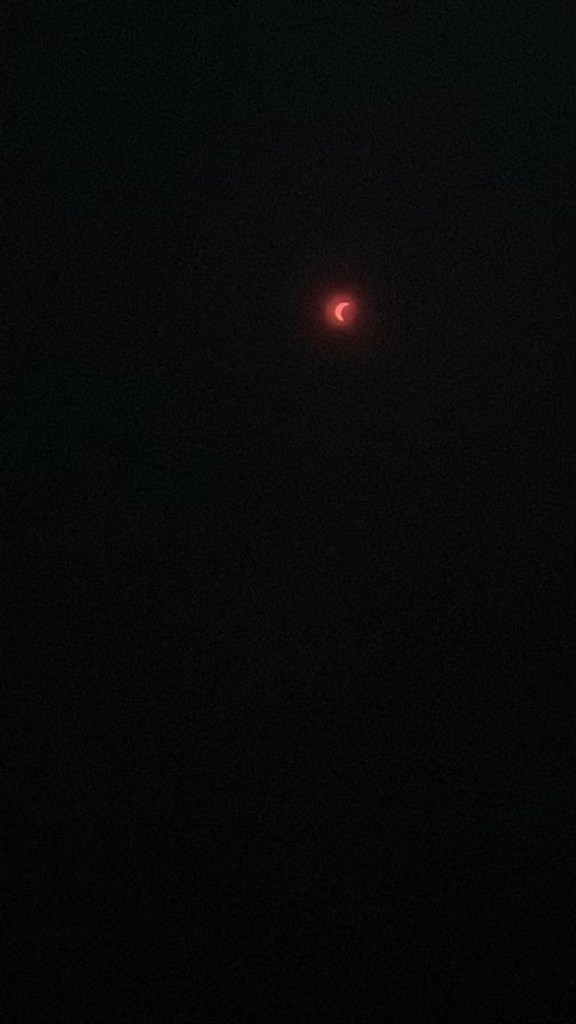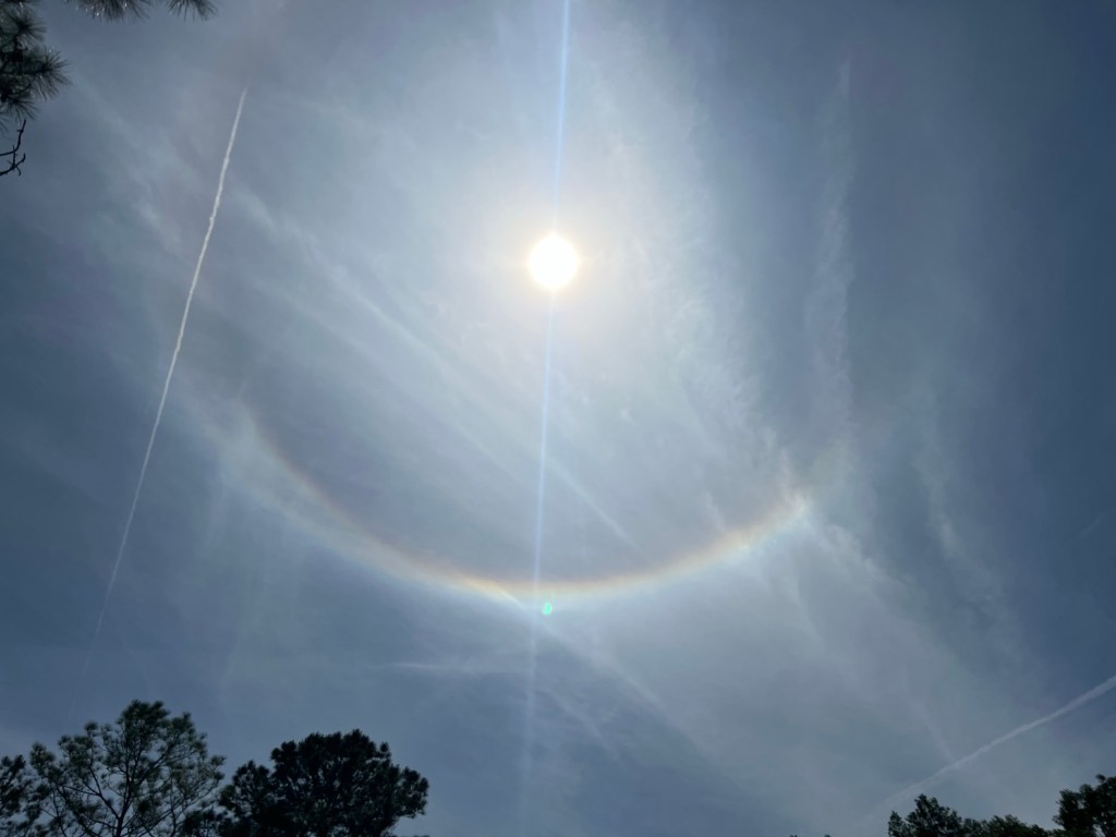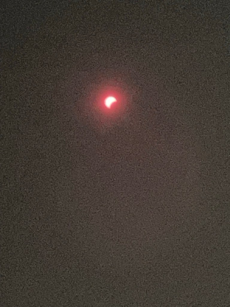 We all grabbed our eclipse glasses and spent most of the afternoon outside and in the garden. Even the chickens came out to enjoy the day for a bit. I wasn’t able to get any good pictures of the eclipse but my son got some nicer ones… I did get a picture of the rainbow or sun dog which we weren’t expecting!