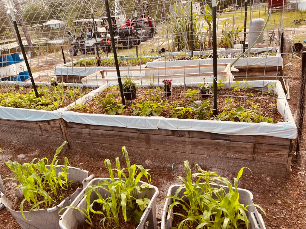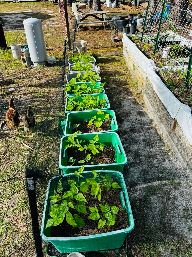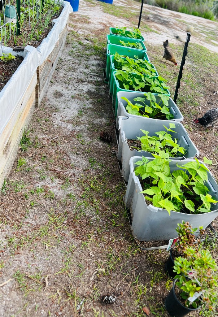 These may get moved after the growing season so we can consolidate all of the gardening into one spot… not sure yet but it is a thought. These beds may become a greenhouse… these storage totes have been going strong since 2022!