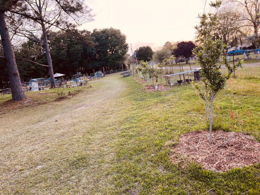 I’ve added some more mounded beds since these pictures were taken as well… Mr. Awesome saved me some backache and a couple of days’ worth of work by using the tractor to bring the dirt to the garden. I’m hoping to create a ‘secret garden’ space for me.