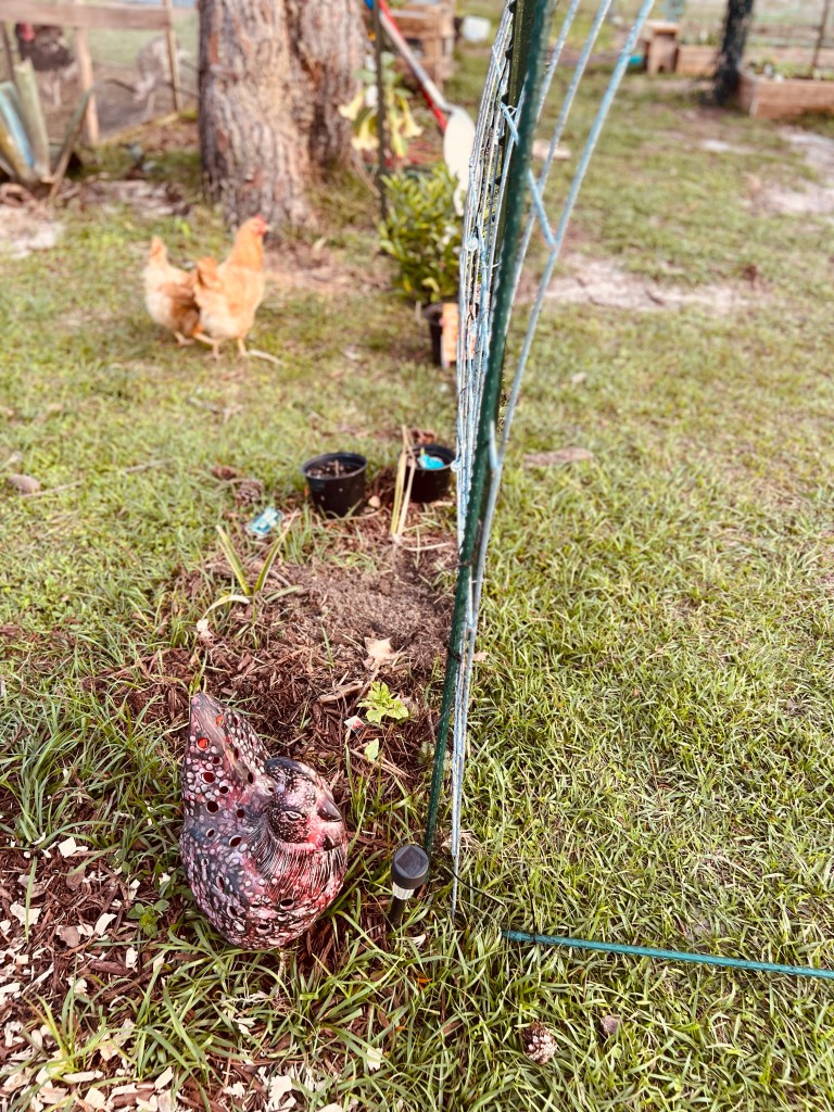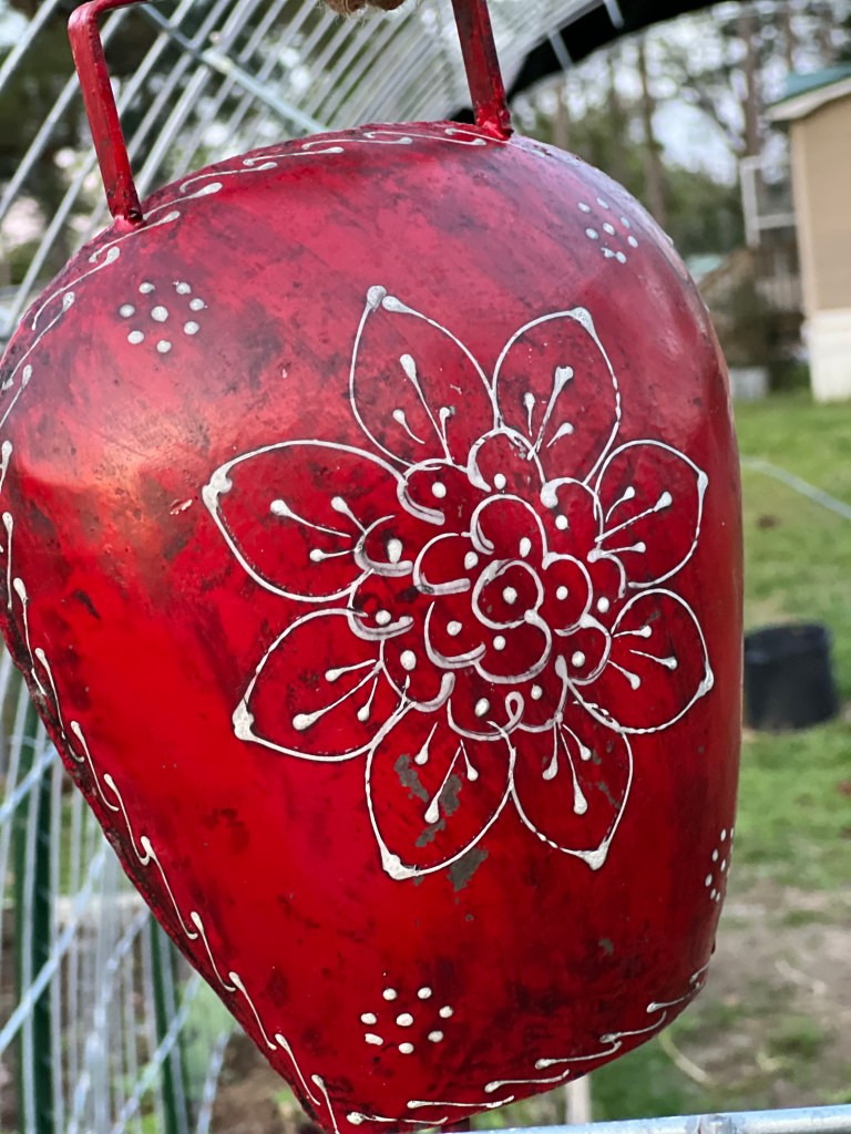 The red bells were at the flea market… got them both for $10!!!! The signs were at Aldi and I think they were about $5 each… so cute! I also found a dragon fruit, papaya, and a pomelo at the flea market. Don’t you love the chicken? She goes well with the previous flea market find… a scrap metal rooster.