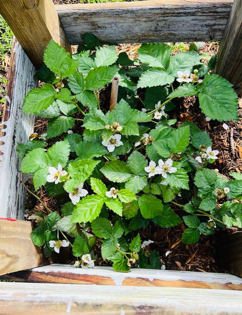 We found that we had accidentally propagated some new blackberry bushes when we were mulching… YAY!