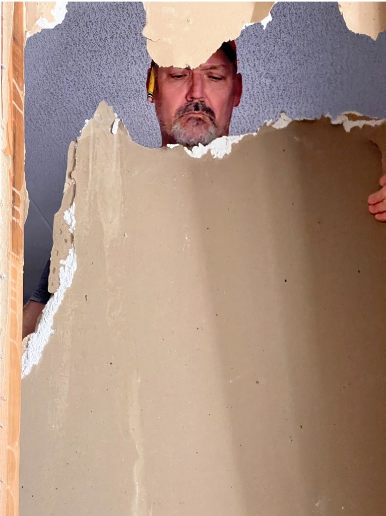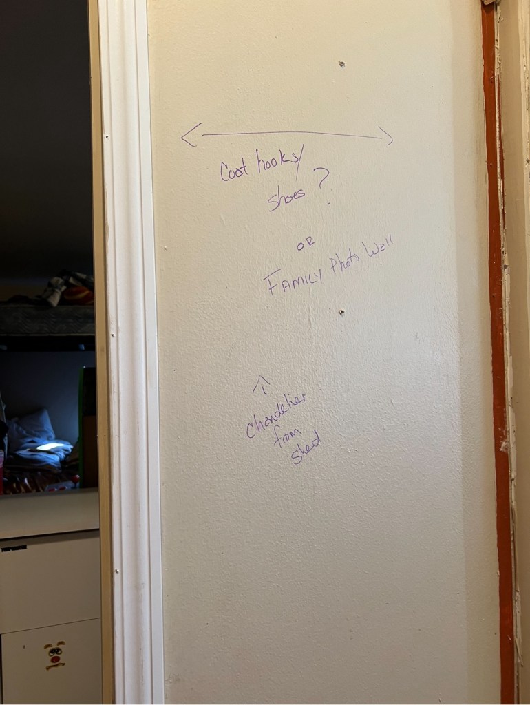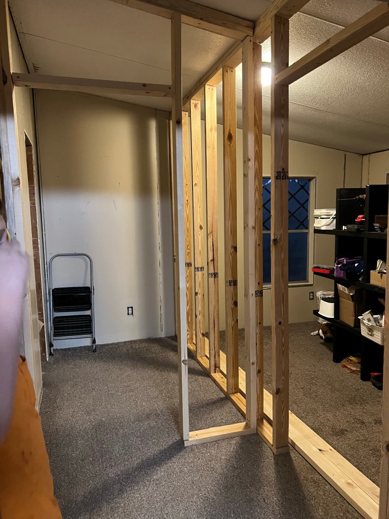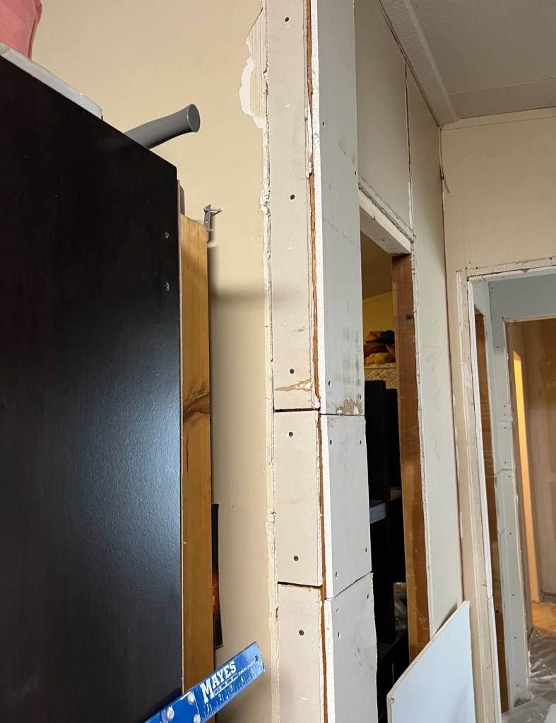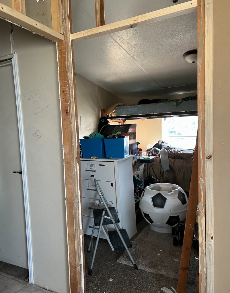 The room got a good cleaning and we added a couple of new shower curtains for the window, closet door, and temporary bedroom door. We have the door we just haven’t put it on yet as we need to do a bit of sheetrock work in that room when we get in there to finish it up.