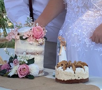 We had tons of great food and plenty of wonderful desserts to choose from. We decided to make a faux wedding cake so it wouldn’t melt in the heat but they did have a small cake for cutting plus the groom had requested a special chocolate chip cheesecake.