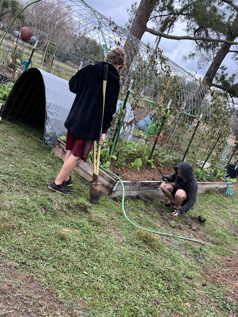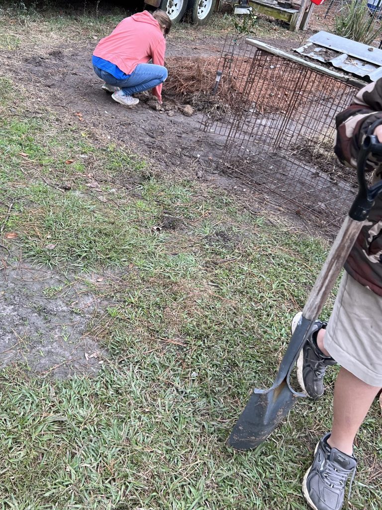 We moved the chickens from one end of the garden to the other so they could work their magic again. They did a good job on the lower end and we now have that ready to plant… when the weather warms up a little.