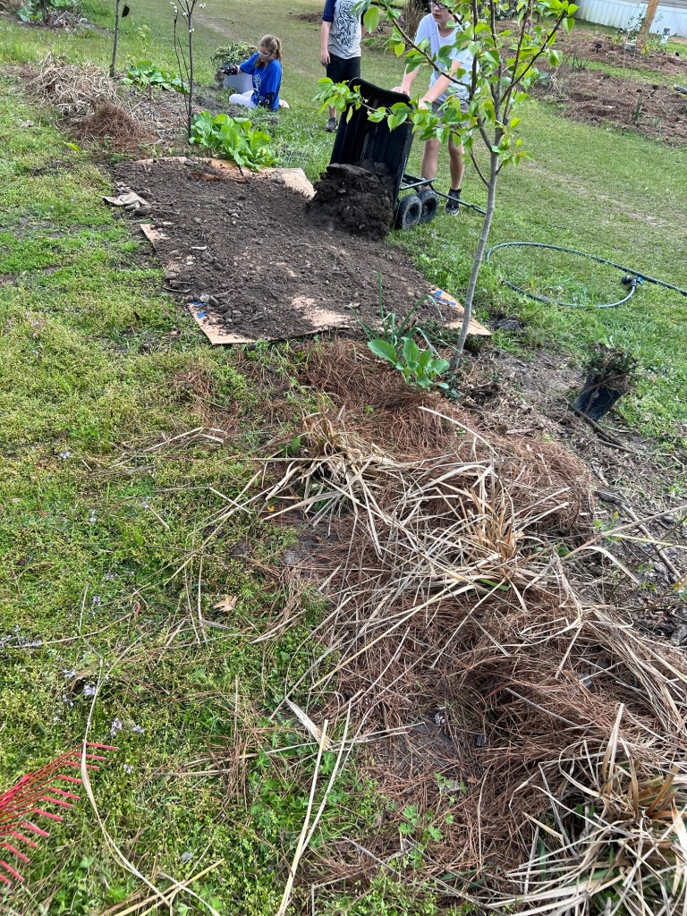 As you can see… we’ve been a little busy. Everyone has been helping out and enjoying the nice weather we’ve been having. We do a little here and there and sometimes it feels discouraging because we don’t get as much finished as we want but when we look back you can really see some big changes!