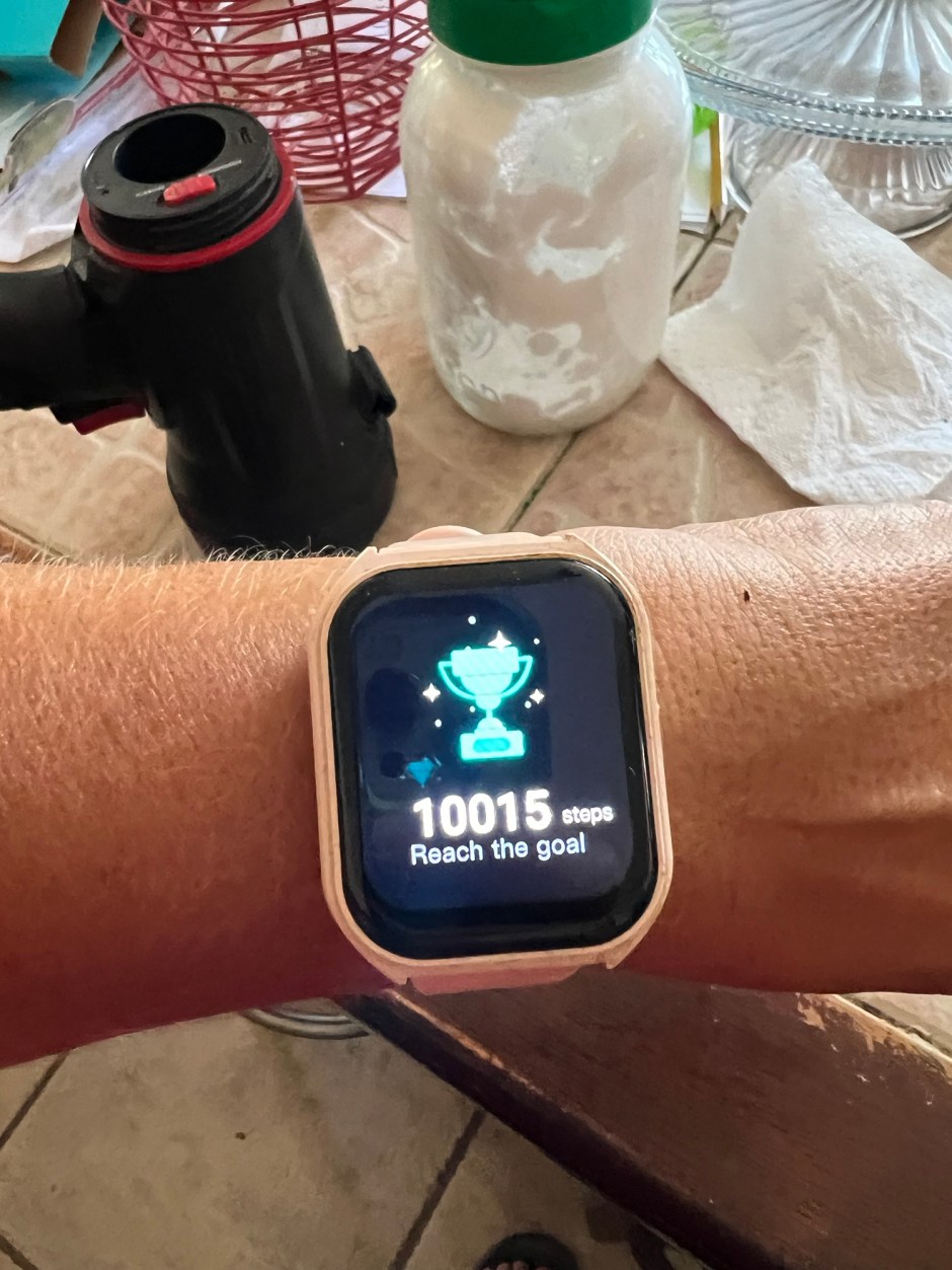 The watch also keeps track of steps so I started noticing how much I walked every day… on the days when I watered the garden I would get quite a few steps in. The first time I hit 10,000 steps before lunch I was amazed. This may not be a HUGE feat for everyone but it seemed pretty big to me so I decided to make it a goal to get 10,000 steps before 10:00 every day.