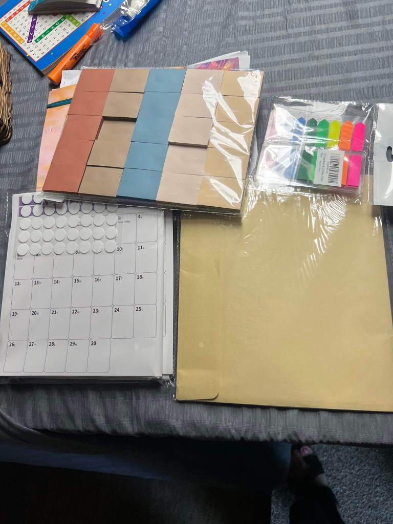 I have also included some clips with a pen, sticky notes, and sticky flags.That way others can make a note to stick on the calendar for me. If an appointment changes we can simply move the sticky flags… don’t worry, I’ve written the dates and times on them and I have them in my online calendar, just in case someone plays with them.