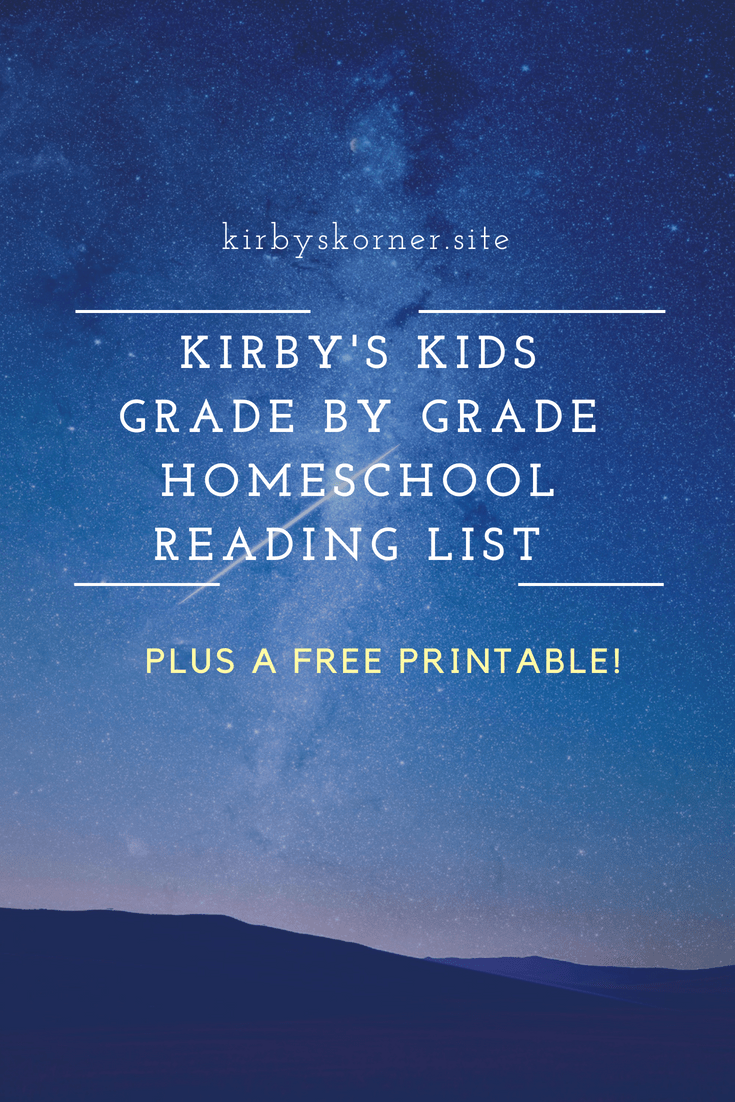 We will also be working on reading through a few books, see Kirby’s Kids Grade by Grade Homeschool Reading List , for each different grade level. The older kids will have some independent reading while the younger ones will have a mixture of read alouds, read alongs, and independent reading.