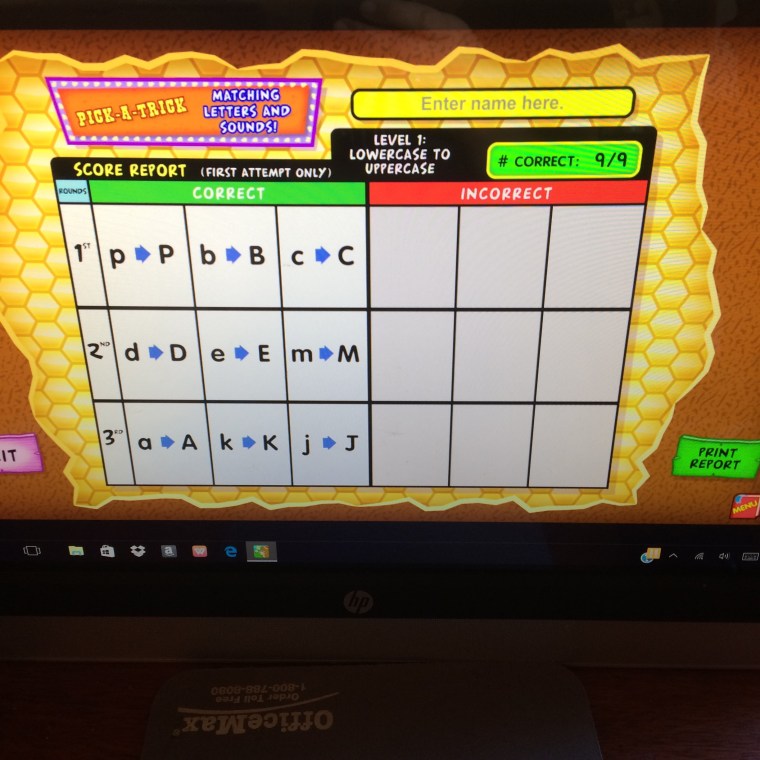 This is on the 2nd level and matches the Uppercase to the starting sound. This is an area where my DS14(special needs) really needs help.
