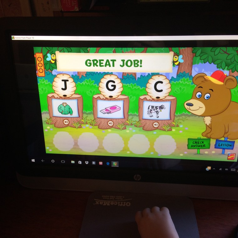 He helped the 3 year old with this screen. They took turns back and forth. Teamwork is important too!