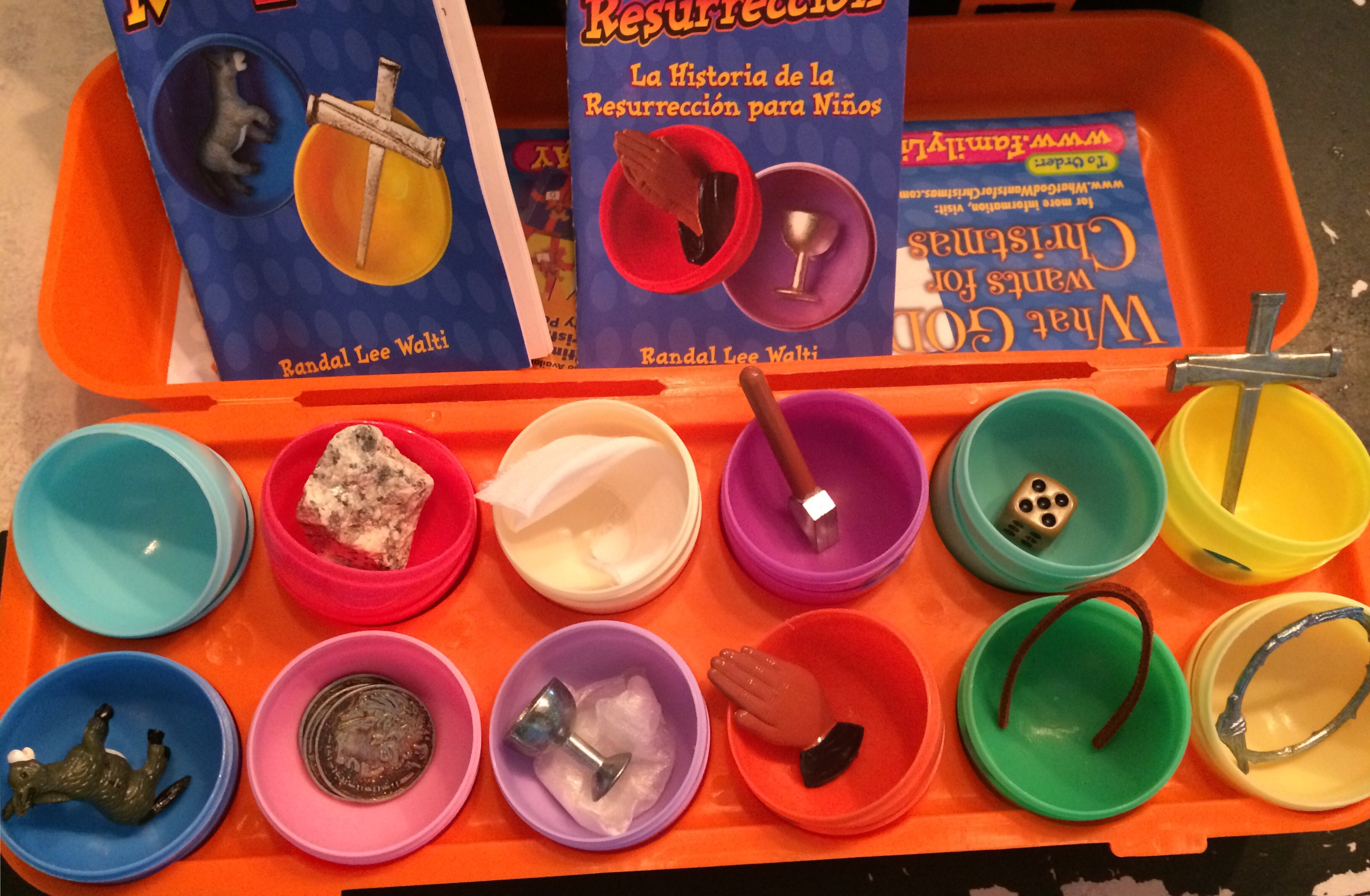 After breakfast we had a mini lesson using our Resurrection Eggs that I found at the thrift store last year. I will post a few pics at the end of the post. We went over the meaning of each item and talked about the real meaning of Easter before letting them inspect the basket.