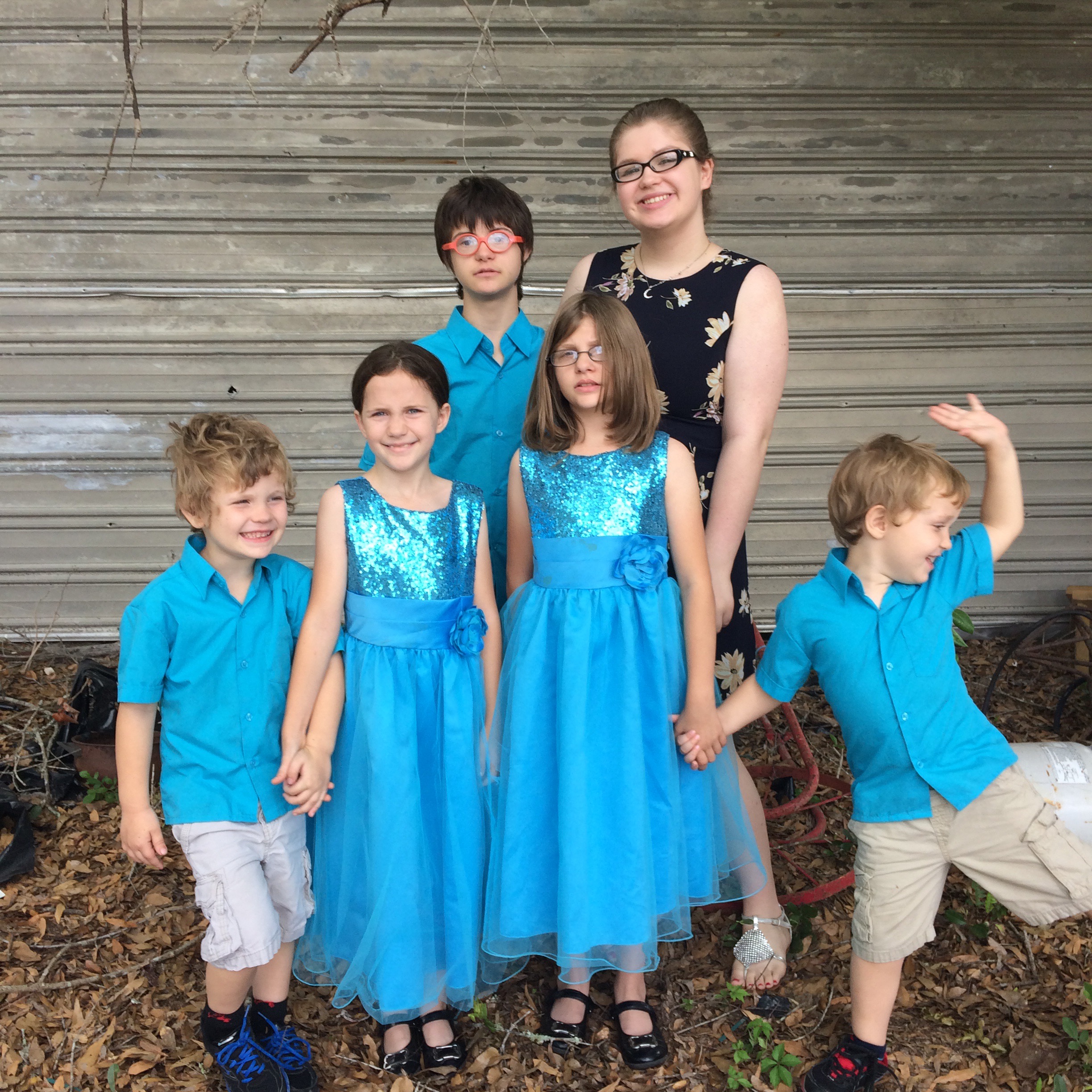 It took forever to get a decent picture where almost everyone was smiling and (almost) looking in the same direction. Big sister didn’t want to wear her matching dress which was OK. The little girls had snuck into some chocolate while I was getting ready. They smeared their chocolate hands on the fronts of their dresses too. We got them spot cleaned and off to church we went. It was really nice to have 6 of my 9 kids in church with me today too. While at church the same two girls tore holes in their dresses…. I will have my work cut out for me trying to repair them… but that’s life!