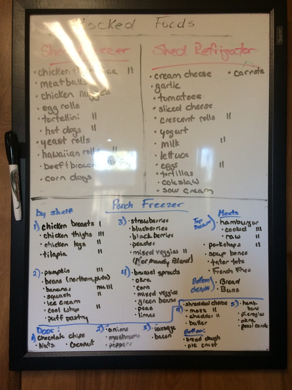 I think I mentioned here that I was planning to hang a dry erase board to keep track of where I had stored all of our refrigerated/frozen foods as we have 2 freezers and 2 refrigerators that we are currently using.