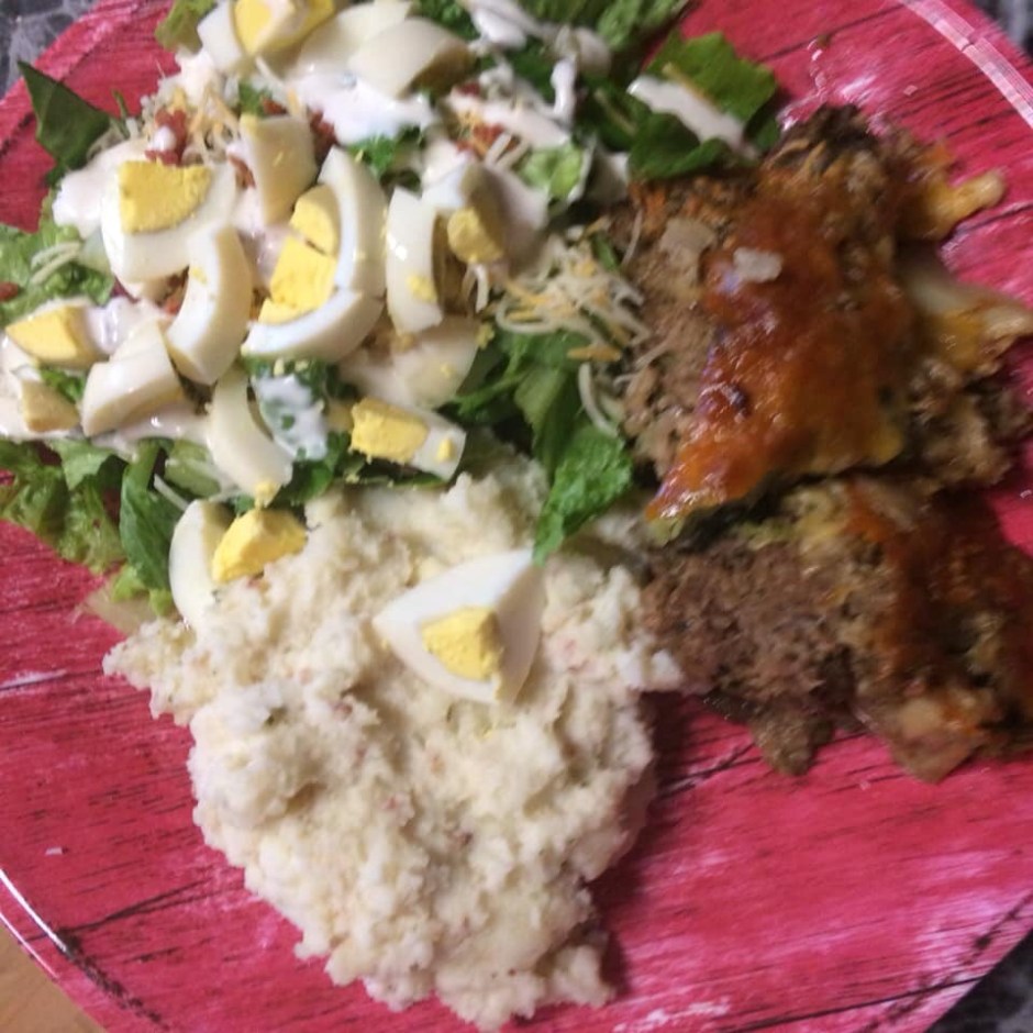 Upside-Down Meatloaf,Mashed Potatoes, Veggies