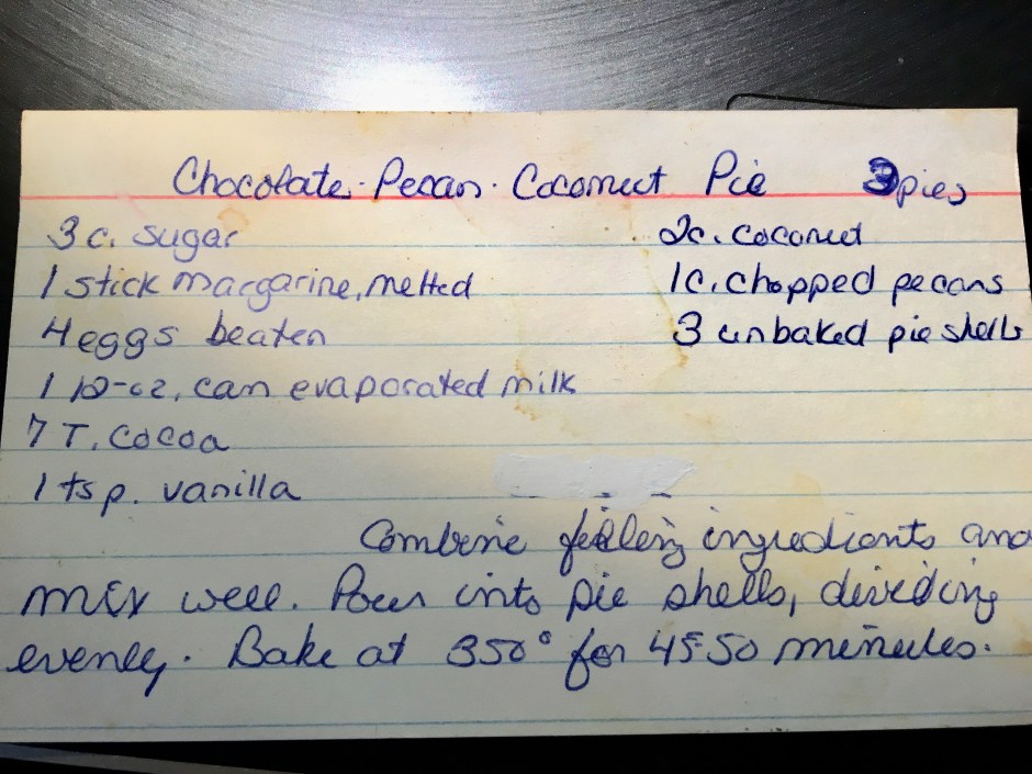 This is very similar to the German Chocolate Pie recipe that I posted before but this one makes 3 pies!