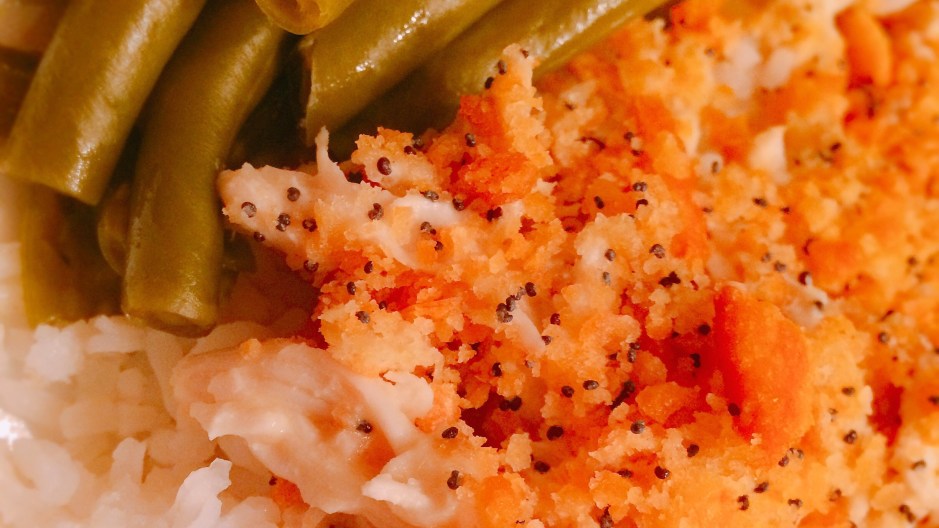 Poppy Seed Chicken, Rice, Green Beans, 7 Up Biscuits