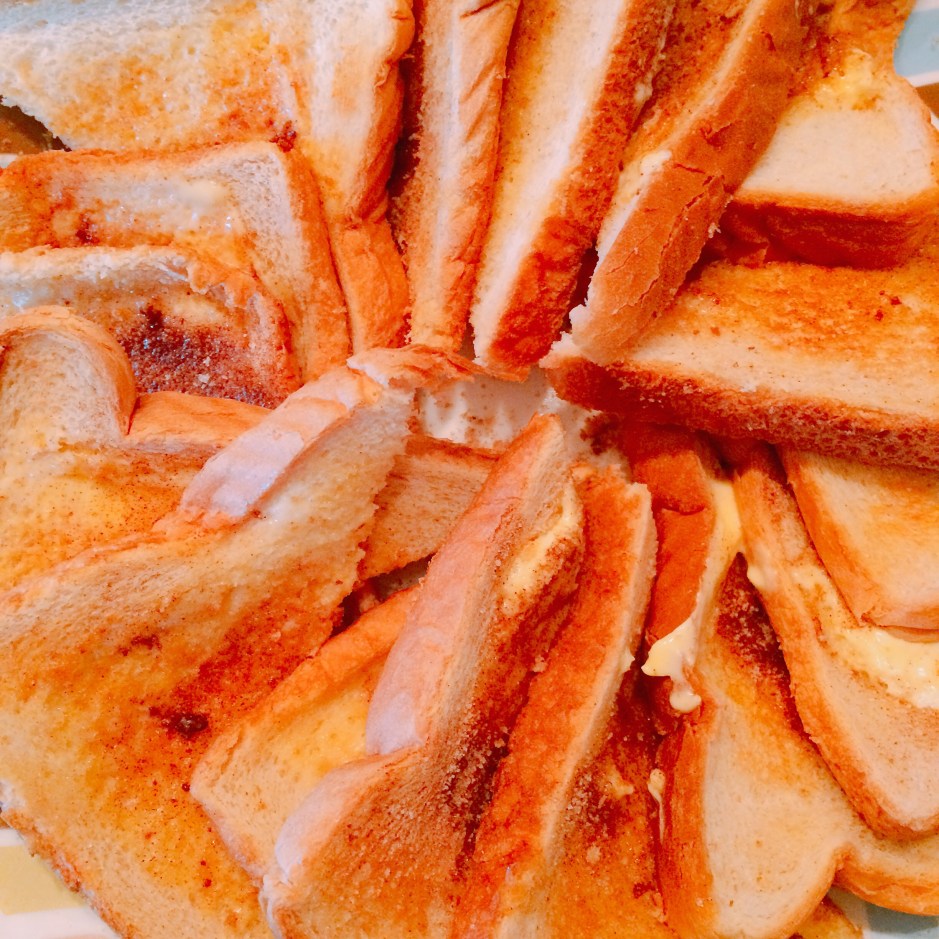 I really don’t know what the name for these originally was. My mom would fix them for us every now and then. I’d always get so mad because I had that one sister who would steal all the buttery toasted rounds and eat them for herself.