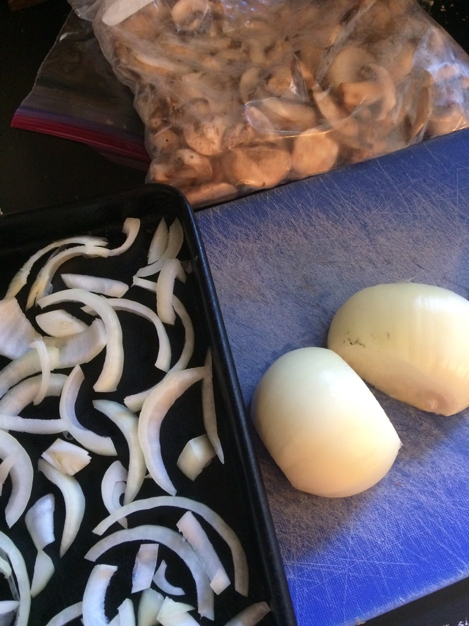 Today has been prepping veggies. I really love mushrooms and can often find them on sale but they don’t keep long in the refrigerator. My solution is to freeze them right away if I am not using them. You can do this a couple of different ways.