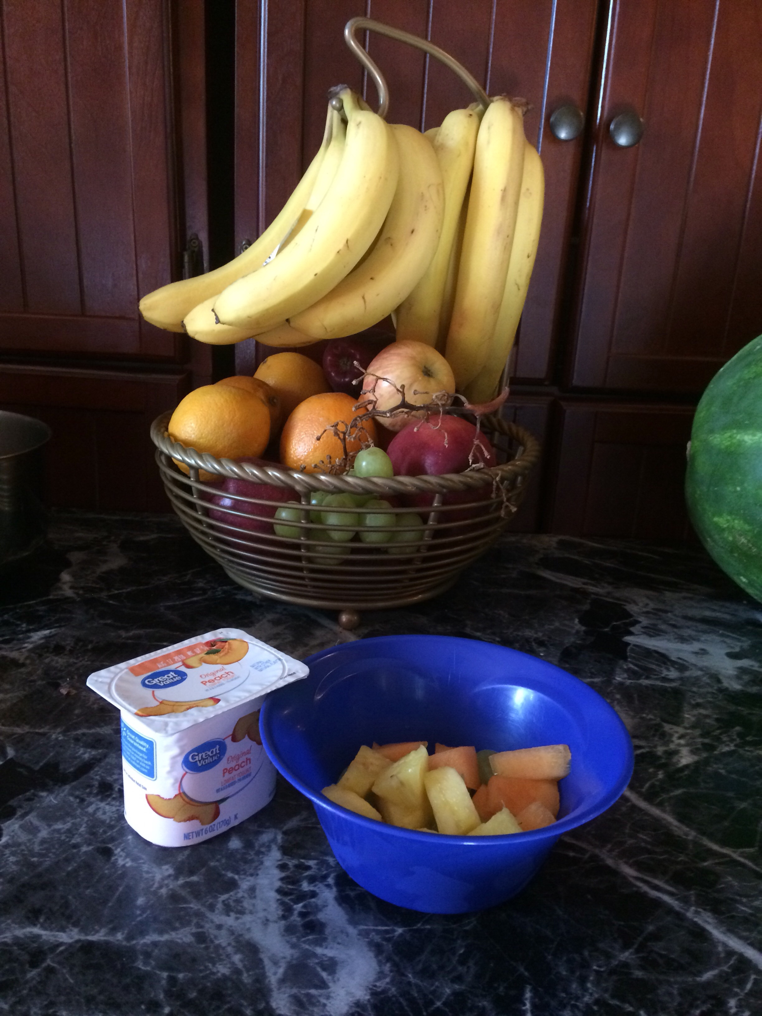 Wednesday morning we changed our breakfast routine a bit. Instead of Muffins the kids had a bowl of fresh fruit and a cup of yogurt.
