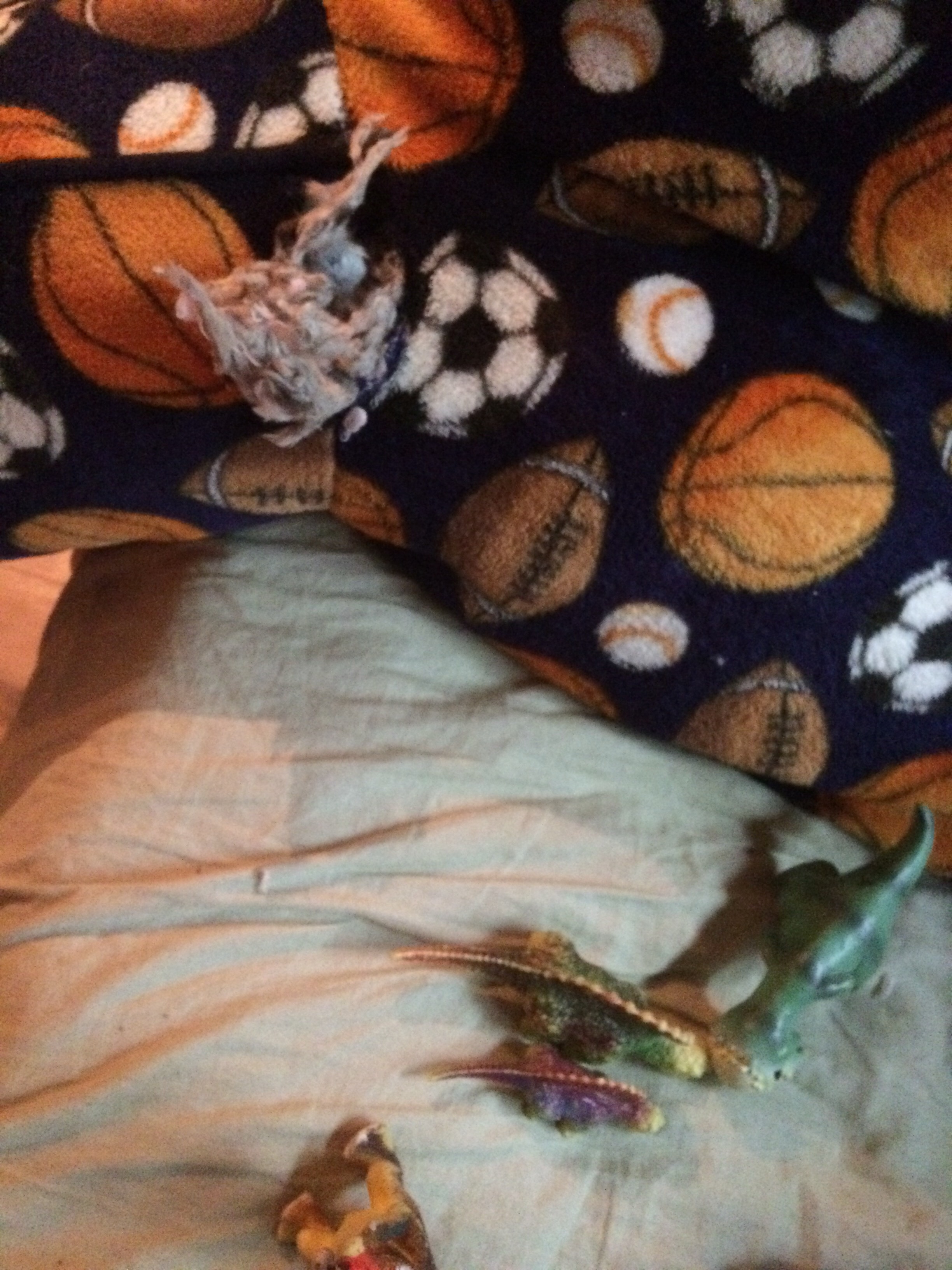 It appears that this little pillow has a hole and is leaking elephant fuzz… lol… kids come up with the darnedest things don’t they? Well, I got the hole taken care of and hopefully that’ll be the end of the elephant fuzz.